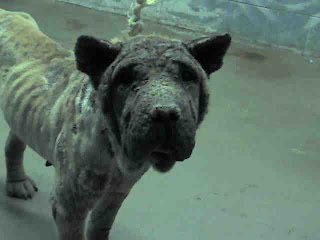 Soo…. lets figure this out. Someone drops this little guy at the shelter and basically leaves him to die. I get an email from my good friend Kim, who is an angel to any animal in need. The pleas go around and PeiPeople steps up to take him. Thank GOD! Now lets examine the facts.
